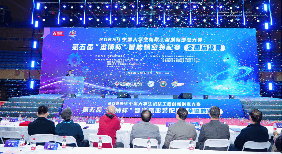 2025年11月21日至22日,中国大学生机械工程创新创意大赛第五届“遨博杯”智能精密装配赛全国总决赛在杭州电子科技大学体育馆圆满落幕。智能精密装配赛由中国机械工程学会主办,中国机械工程学会生产工程分会、杭州电子科技大学、北京理工大学、遨博(北京)智能科技股份有限公司共同承办,并获多家国家级平台支持。大赛以“培养创意思维,开拓创造能力,发掘创新人才,推动产业提质”为宗旨,致力于为青年学子搭建高水平的智能精密装配技术交流与展示平台,助力我国从制造大国向制造强国的跨越发展。本届大赛以“装配融巧思,智能创未来”为主题,初赛吸引了来自清华大学、华中科技大学、香港理工大学、西北工业大学、北京理工大学、重庆大学等全国160余所高校的近800支队伍同台竞技,规模创历届新高。经层层选拔,共有85所高校的245支队伍晋级全国总决赛。本届赛事还首次设立留学生赛道,进一步拓展了比赛的国际化视野。