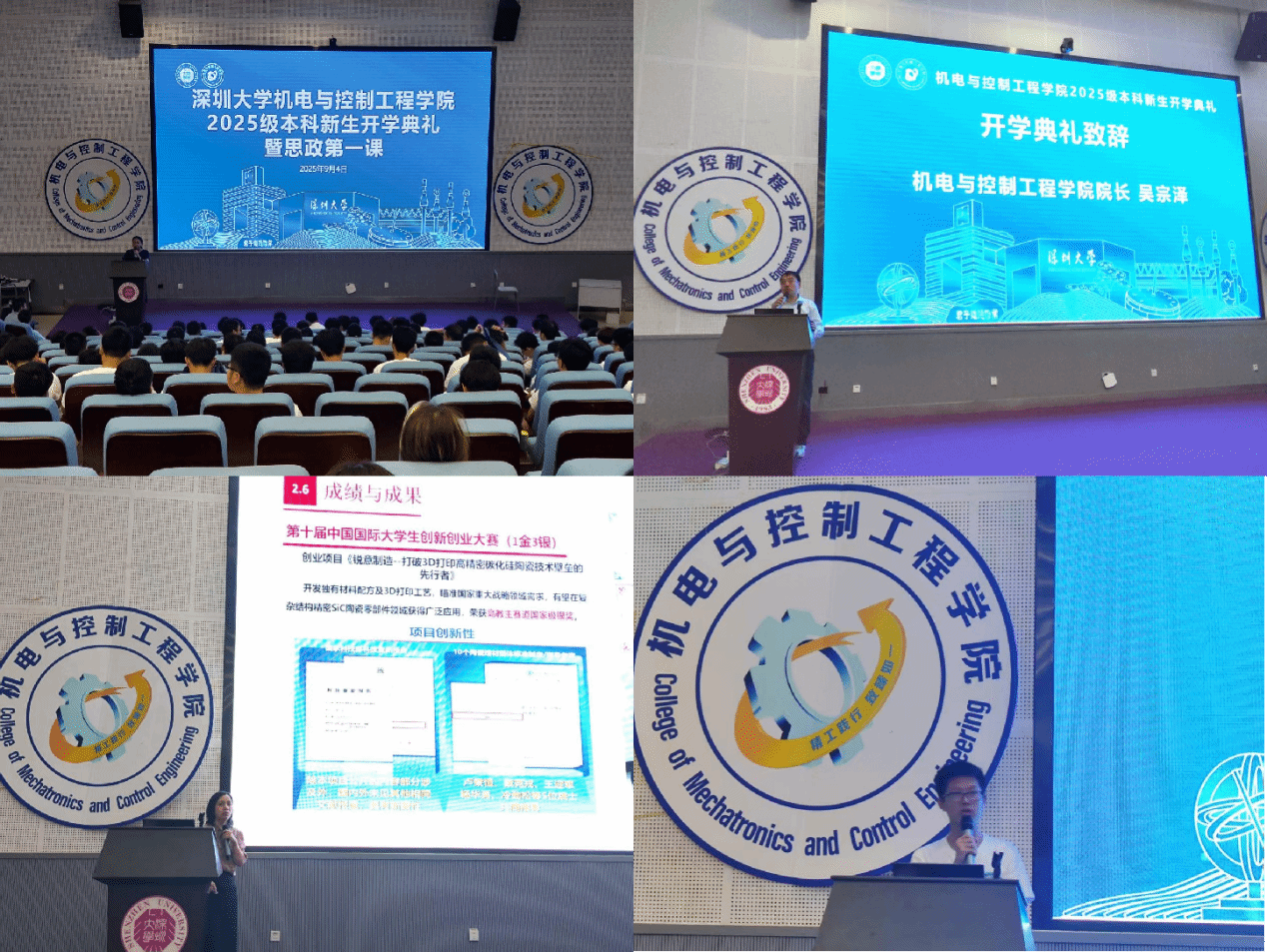 院长吴宗泽、党委书记郑纯、党委副书记邓琳、副院长娄燕、院长助理徐斌、机械系主任赖志慧、自动化系主任陈宏、本科2025级班主任老师、辅导员老师出席,邓琳主持典礼。
